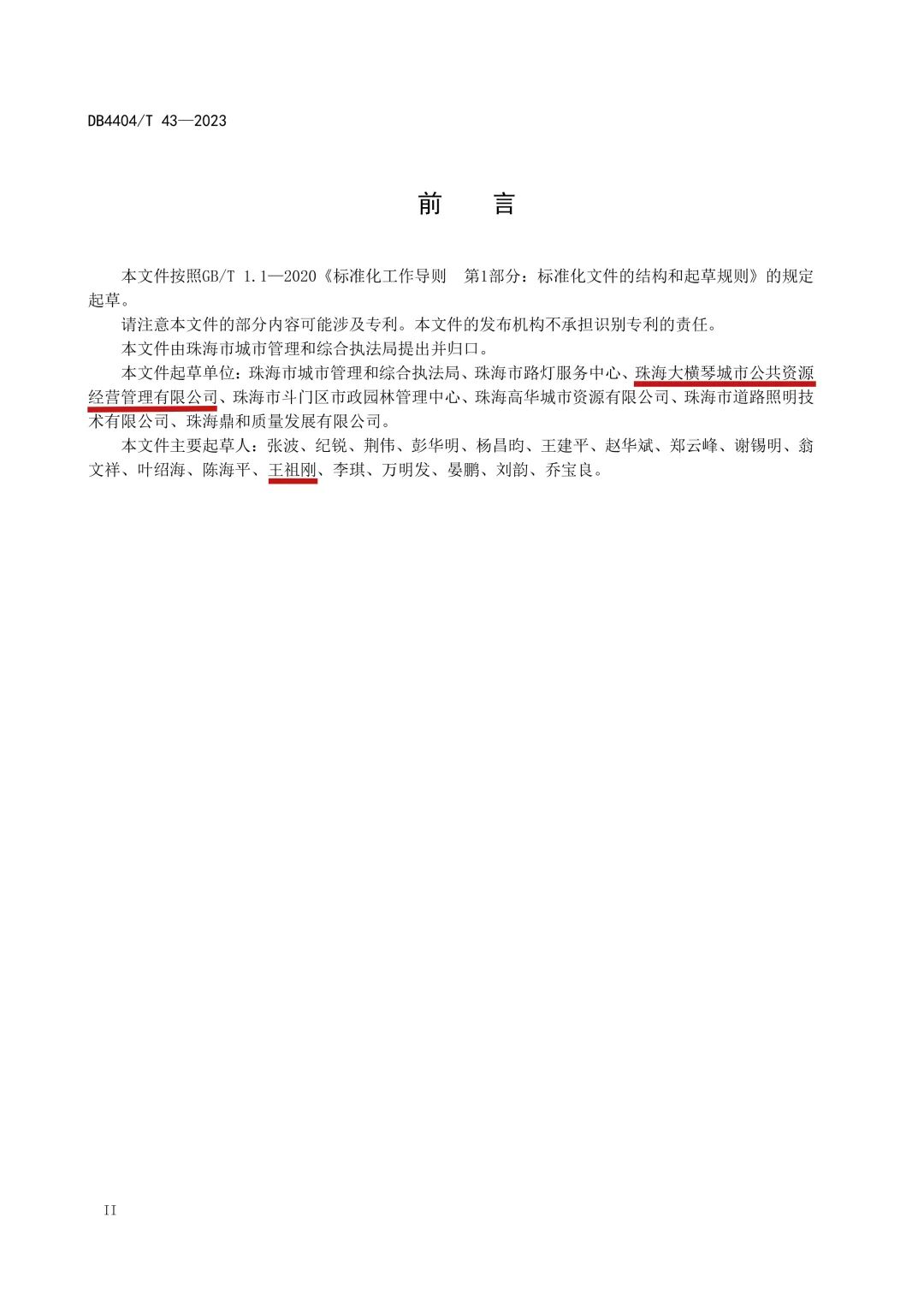 大橫琴城資作為標準編制單位之一、大橫琴城資市政設施部副總監(jiān)王祖剛作為標準主要起草人之一,積極參與標準制定工作,助力構建系統(tǒng)高效的城市照明體系。