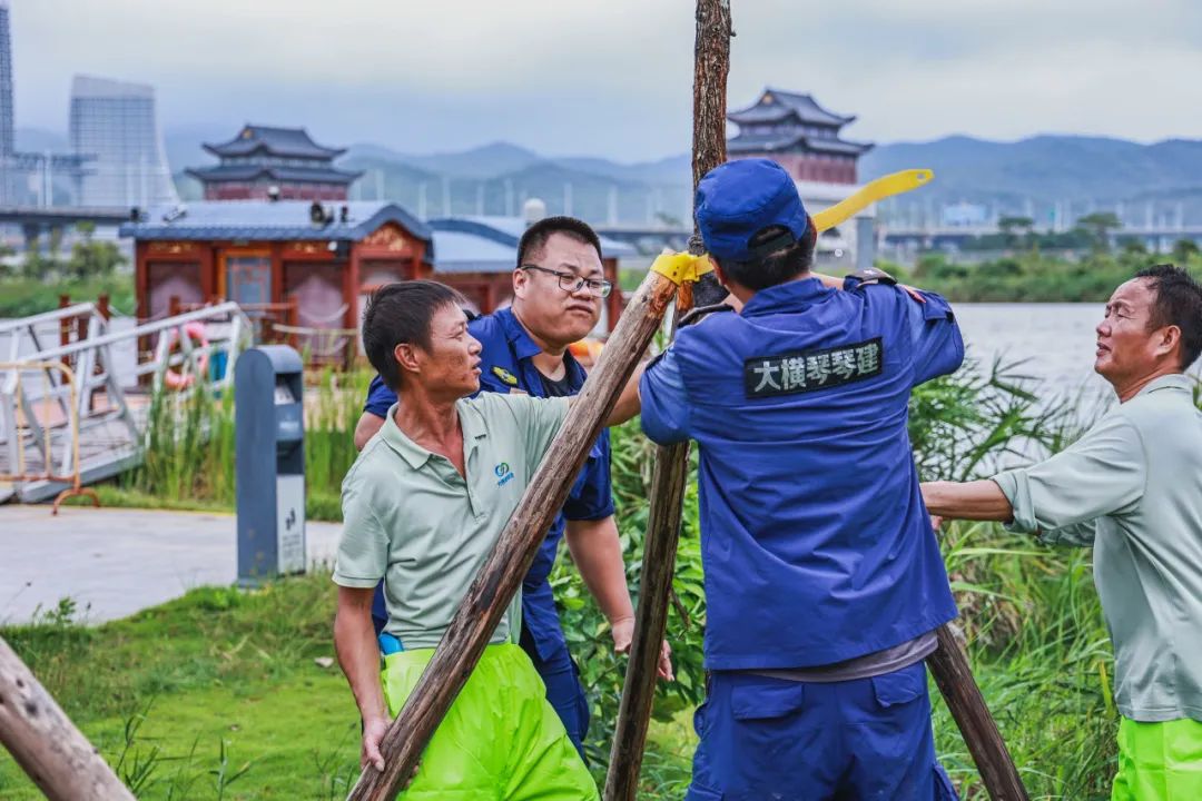 琴建公司管理人員全員上崗,對所管養(yǎng)的花海長廊、芒洲濕地公園、二井灣濕地公園、天沐河公園、各城市驛站、小橫琴山步道、水庫、沙灘等項目及在建工地進(jìn)行防臺風(fēng)工作。