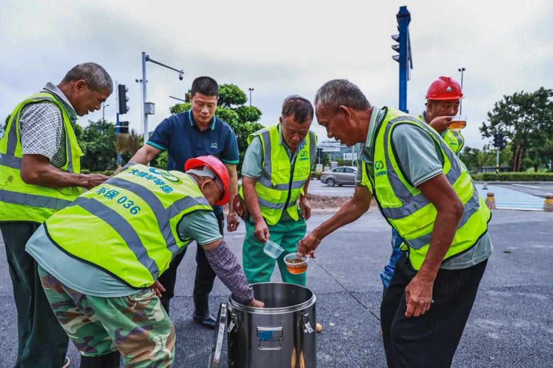在搶險救災(zāi)的同時,琴建公司為奮戰(zhàn)在一線的員工提供防護(hù)裝備和物資,確保員工在惡劣天氣條件下做好防護(hù),保障安全,并為各項目送去食物和姜茶。